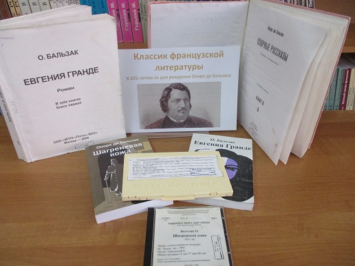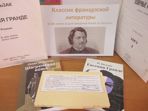 Приглашаем читателей посетить книжную выставку "Классик французской литературы", на которой представлены произведения Оноре де Бальзака, одного из основоположников реализма в европейской литературе. Книжные издания в специальных форматах из библиотечного фонда доступны для чтения как в брайлевском и укрупнённом формате, так и в озвученном, в том числе, и электронном.