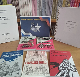 К Дню защитника Отечества библиотекой подготовлена книжная выставка «Овеянные славой». Представленные художественные произведения о героизме и доблести защитников нашей Родины, их подвигах во время Великой Отечественной войны.