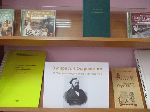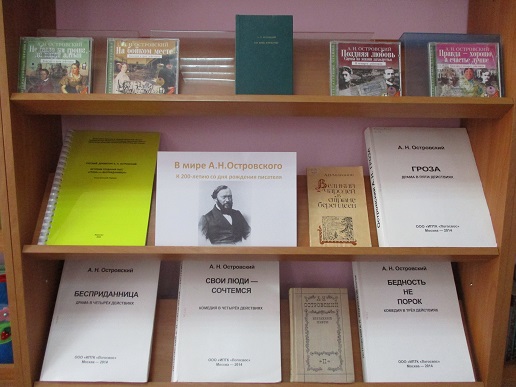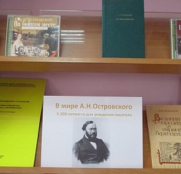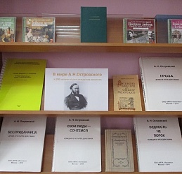 Библиотекой подготовлена книжная выставка-обзор «В мире А. Н. Островского», на которой представлены лучшие произведения мастера.