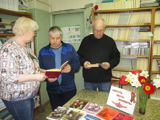 К 79-летию со Дня Победы в Великой Отечественной войне в Шуйском филиале № 2 оформлена книжная выставка-просмотр «Читать, знать, помнить», на которой представлены художественные произведения, написанные советскими писателями в военное и мирное время. Книги С. Алексеева , И. Акулова, А. Ананьева, А. Адамовича, М. Алексеева повествуют о беззаветном героизме советских людей во имя Родины и ради защиты всего, что нам дорого и свято.