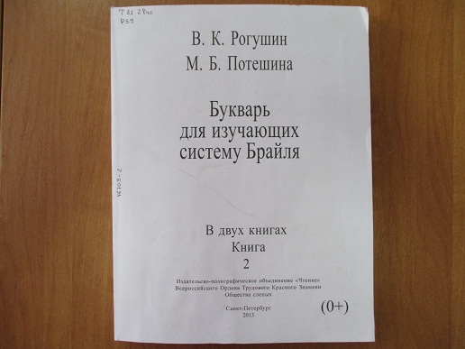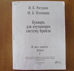Напечатанный шрифтом Брайля «Букварь для изучающих систему Брайля» В.К. Рогушина и М.Б Потешиной.