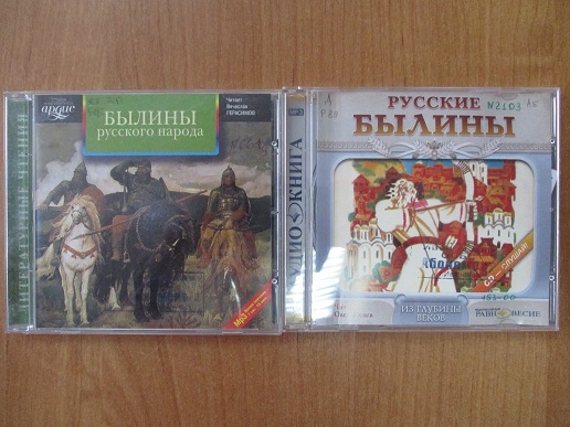 Среди изданий на CD-дисках представлены: «Русские былины» и «Былины русского народа», которые вводят нас в неповторимый мир Древней Руси. Былины не обошли такого важного вопроса, как грамотность героев, распространенность образования вообще… И это не удивительно — ведь они повествуют о временах, когда на Руси были распространены письмена на бересте, то есть, о временах довольно широкого внедрения в народ умения читать и писать; Аудиокурс «Веселая школа. Учим буквы», который поможет ребёнку в игровой форме выучить буквы.