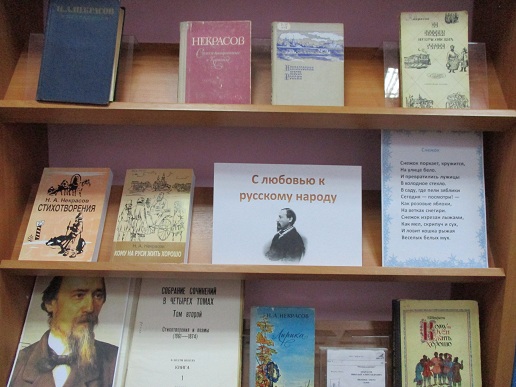 10 декабря 2021 года исполняется 200 лет со дня рождения великого русского поэта, писателя и публициста, классика русской литературы Николая Алексеевича Некрасова. К этой знаменательной дате библиотекой подготовлена книжная выставка «С любовью к русскому народу».