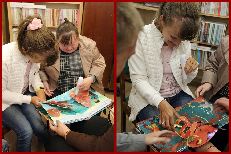 Гости читали книги с «Волшебным карандашом» с увлечением: тактильное и звуковое восприятие иллюстрированных рисунков и текстов сказок разных народов многонациональной России было для них познавательным и интересным.
