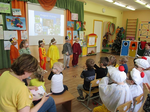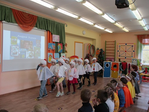 Дети вместе с педагогами подготовили концертную программу, в которой разыграли сценку «Кто разбил моё яйцо?» (младшая группа), «Снеговики» показали танец-марш, и прозвучали стихотворения поэта, также была оформлена выставка рисунков. По завершении концерта дети поделились своими впечатлениями от знакомства с веселой поэзией Андрея Усачёва, получили грамоты и сладкие гостинцы; педагоги также были отмечены грамотами за активное участие в подготовке фестивальных работ.