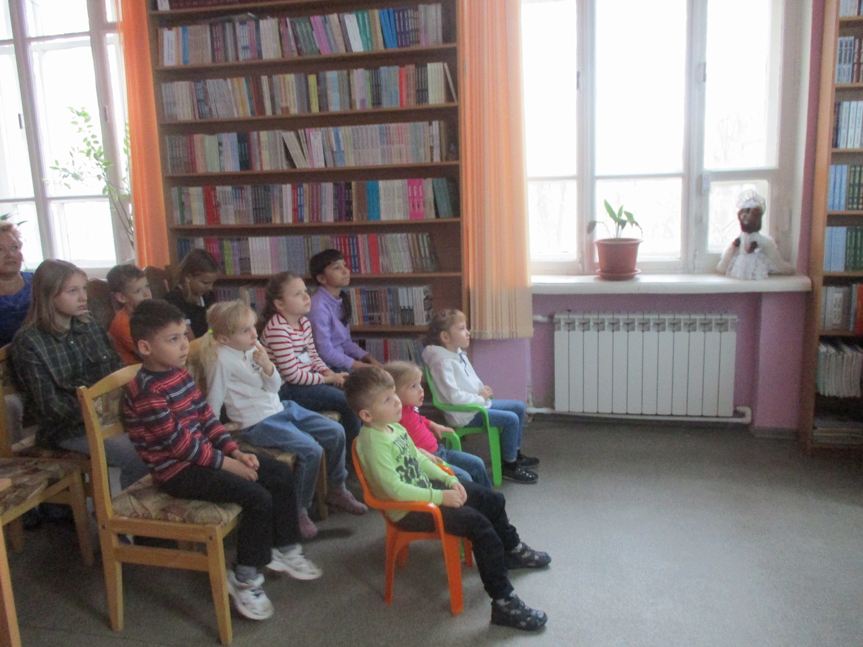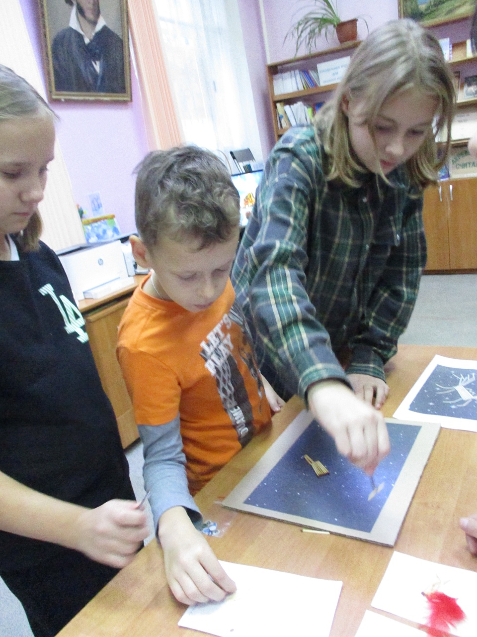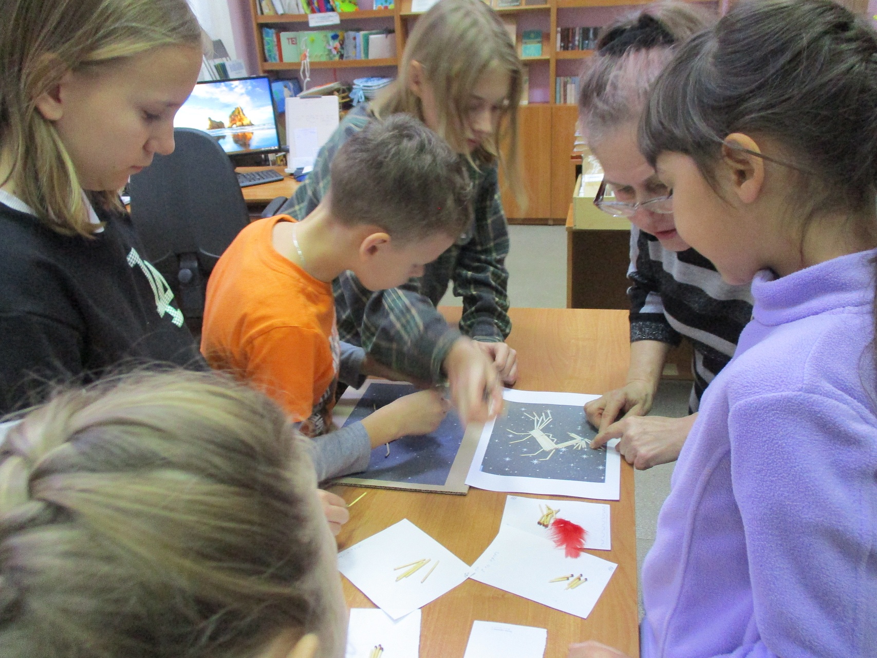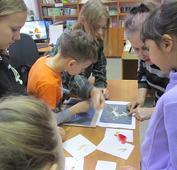 Пока дошкольники смотрели мультипликационный фильм «Теремок» по русской народной сказке, старшие ребята трудились над коллажем с изображением Конька-Горбунка из подручных материалов. Юные гости библиотеки порадовали своей внимательностью, активностью и проявленной любознательностью.