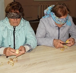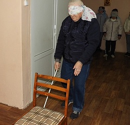 В течение почти двух часов участники с повязками на глазах, ориентируясь только на слух и другие органы чувств, побывали в разных пространствах, попробовали пережить различные ситуации, с которыми приходится сталкиваться людям, лишенным зрения. Им предстояло справиться с различными заданиями: решить бытовые задачи, различить на вкус фрукты и овощи, на запах - травы, на ощупь - крупы, почистить картофель, пришить пуговицу, пройти с тростью, сосчитать деньги, сыграть в шашки, написать слово шрифтом Брайля, используя грифель и прибор – всё это оказалось совсем непростой задачей.