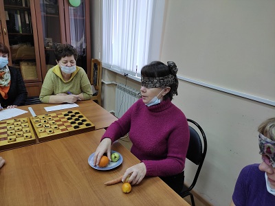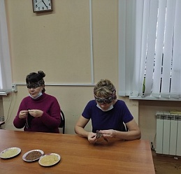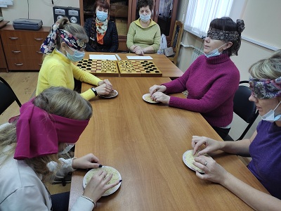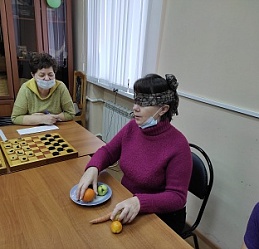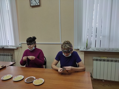 Участники квеста с повязками на глазах, ориентируясь только на слух и другие органы чувств, побывали в разных пространствах, попробовали пережить различные ситуации, с которыми приходится сталкиваться людям, полностью лишенных зрения. Им предстояло различить на вкус фрукты и овощи, на запах - травы, на ощупь - крупы, почистить картофель, пришить пуговицу, походить с тактильной тростью, посчитать деньги, поиграть в шашки, – всё это оказалось совсем непростой задачей. Все участники по-разному справлялись с заданиями, у кого-то оказались лучше развиты органы обоняния, у кого-то осязания.