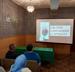 В Фурмановском центре социального обслуживания состоялся просмотр виртуальной гостиной «По страницам пьес Александра Николаевича Островского», подготовленной Еленой Щавлёвой, главным библиотекарем отдела внестационарного обслуживания .