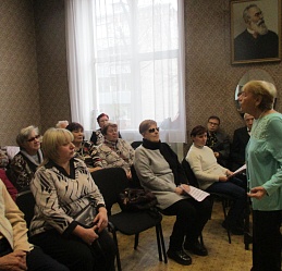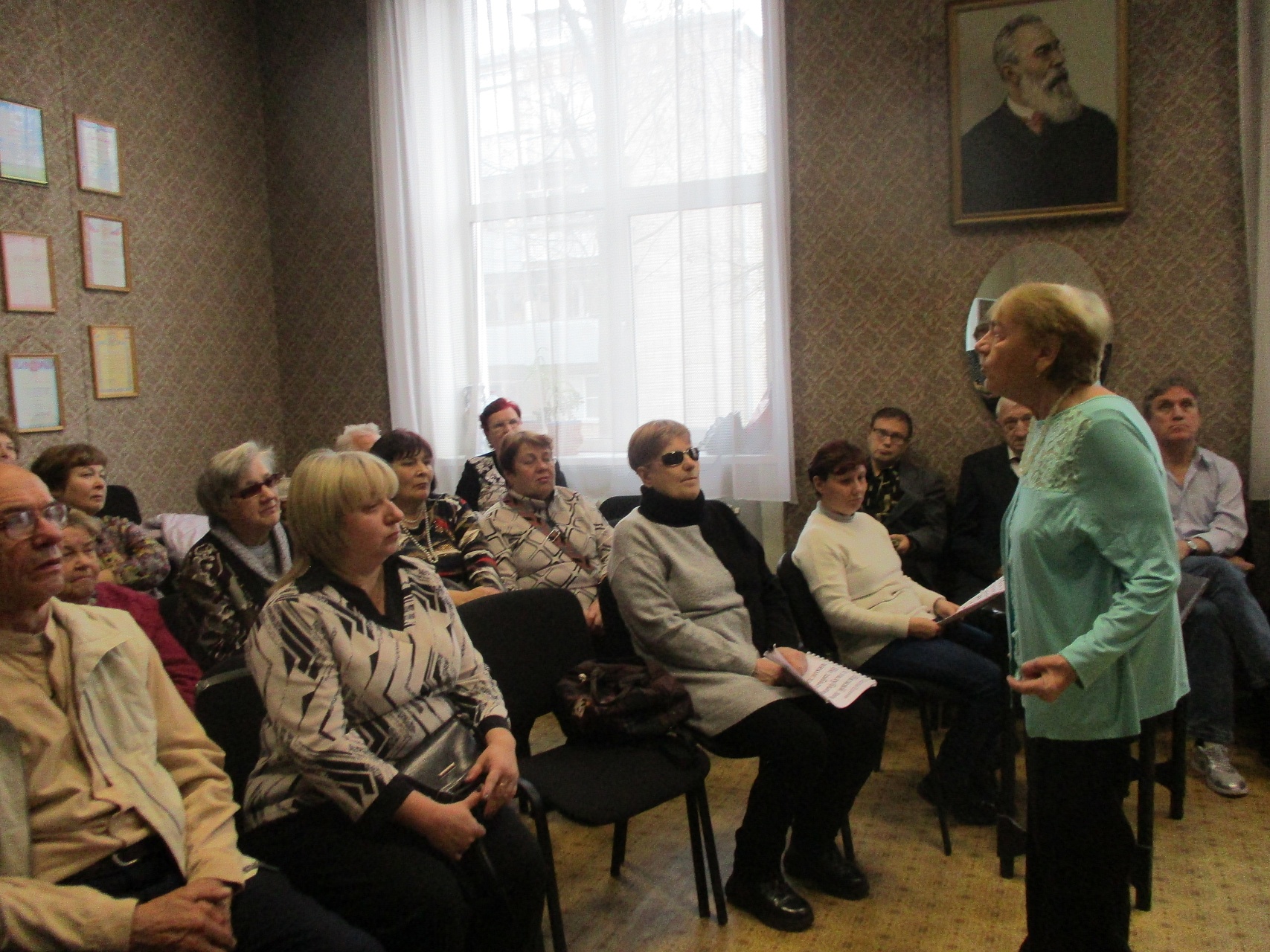 В Доме культуры ВОС 20 октября в рамках XXXV Фестиваля искуccтв «Дни российской культуры» состоялась литературно-музыкальная гостиная «Судьба и лира Сергея Есенина», подготовленная библиотекой совместно с Ивановской областной организацией ВОС к130-летию со дня рождения С.А. Есенина. Повествование об основных событиях жизни поэта, отразившихся в поэзии и определивших главные темы творчества поэта, сопровождалось декламацией стихотворений и прозвучавшими романсами в исполнении членов Ивановской МО ВОС, солистов хора ветеранов труда и вокальной группы «Беломор-band» Дома культуры ВОС. Участники и гости литературно-музыкальной гостиной смогли услышать любимые поэтические строки «певца страны берёзового ситца», очароваться его поэзией, разделить с ним его чувства любви к родной земле и грусти по уходящей юности и скоротечности жизни. В исполнение романсов солистами хора ветеранов труда «Отговорила роща золотая», «Клён ты мой опавший», «Не жалею, не зову, не плачу» вливались и голоса всех слушателей.