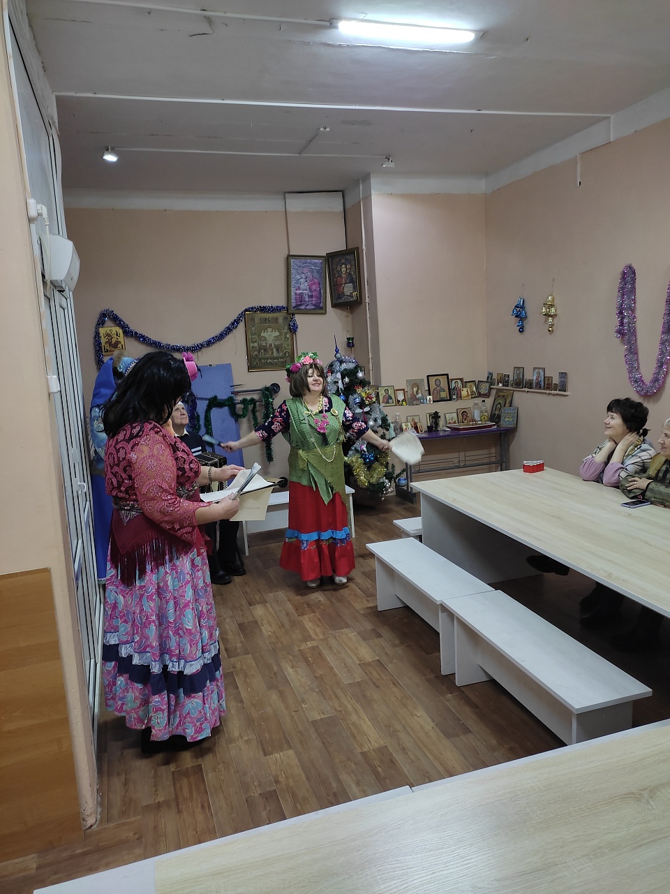 На базе духовно-просветительского центра «Пересвет» в рамках выездного читального зала для читателей Кинешемского филиала №1, инвалидов по зрению, проживающих в микрорайоне Сокольники, состоялось мероприятие «Литературно-музыкальные забавы «Новогодний переполох». В гости к читателям пришли Дед Мороз, Снегурочка, а также Баба Яга со своей подругой Кикиморой, которые привнесли сказочную атмосферу в происходящее. Веселые конкурсы и викторины увлекли всех присутствующих. Каждый старался показать свою эрудицию и смекалку. На протяжении всего вечера звучали поздравления и добрые пожелания, а также любимые новогодние песни. Все участники мероприятия получили заряд положительных эмоций и предновогоднего настроения, а когда пришла пора прощаться, немало благодарных слов прозвучало в адрес организаторов встречи.
