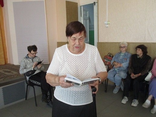 Галина Ивановна Арефьева, бывший преподаватель английского языка Перемиловской школы, принесла на мероприятие поэтический сборник Михаила Танича и прочитала свои любимые стихи поэта.