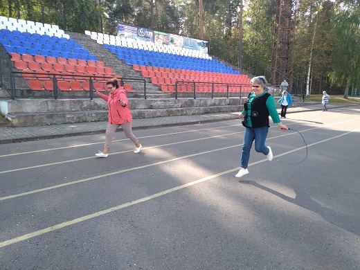 Все участники с большим удовольствием приняли участие в спортивных эстафетах: «Донеси шар», «Веселая скакалочка». Позанимались на тренажерах.