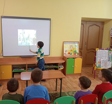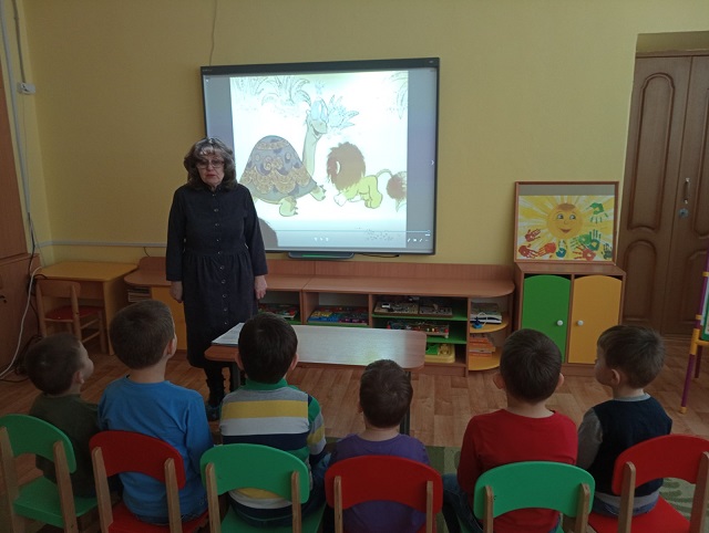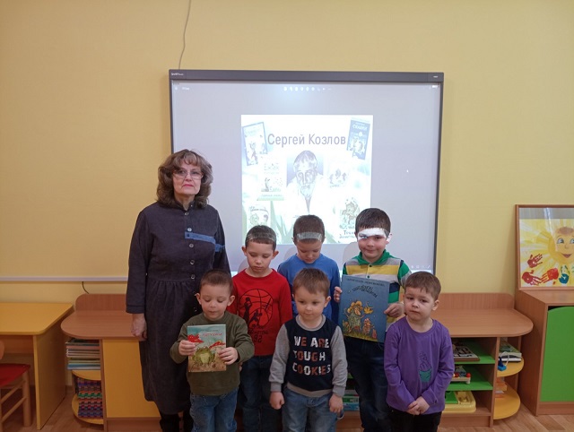 Дети с удовольствием и интересом смотрели фрагменты мультипликационных фильмов о Медвежонке и Ёжике, пели вместе о Львёнком и Черепахой о том, как здорово лежать на солнышке; размышляли о нравственной стороне поступков сказочных персонажей и выразили желание подготовить рисунок или поделку по сказкам Сергея Козлова, или выучить понравившееся стихотворение.