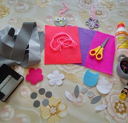 Кусочки фетра, светоотражающая лента, ножницы и клей – вот нехитрый набор для изготовления такого важного и нужного элемента одежды для маленького пешехода, а дальше включается фантазия и под руководством мастера, волонтера Горбачевой Анастасии, и квадраты будут превращаться в алые сердца, смайлики и загадочных зверей.