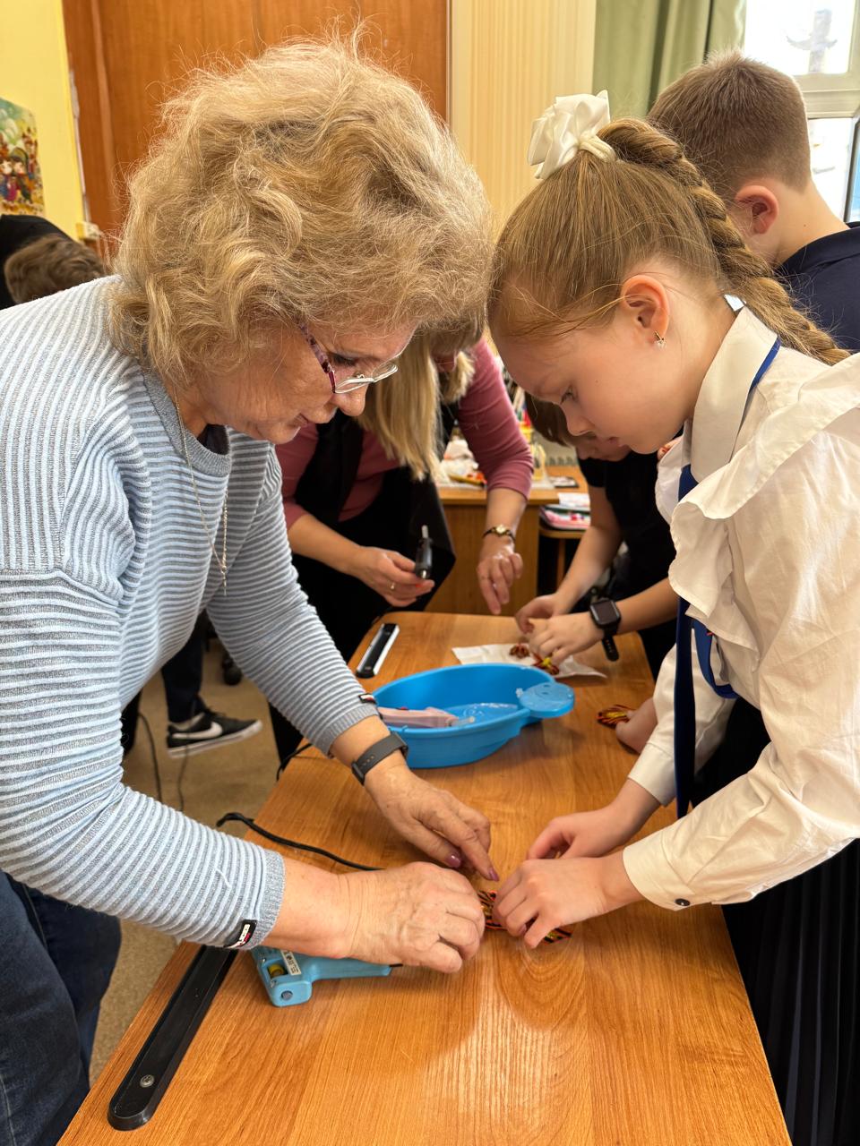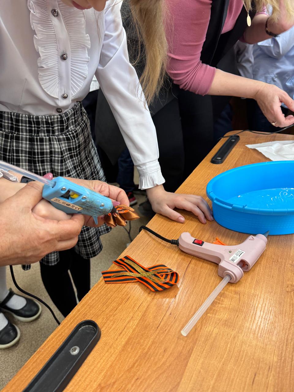 Очень ответственно и серьёзно ребята отнеслись к практической части встречи: все старались предельно аккуратно и точно выполнять каждую часть работы. Получились по-настоящему нарядные и оригинальные броши: школьники почувствовали себя причастными к общей народной памяти, присоединившись к Всероссийской акции «Георгиевская ленточка», призванной выразить уважение ветеранам Великой Отечественной войны и отдать дань памяти павшим воинам.