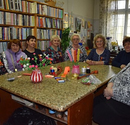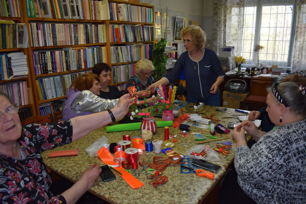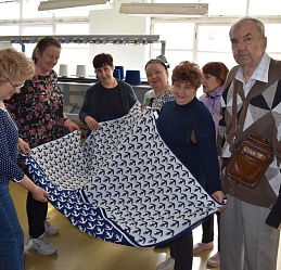 Шуйский филиал № 2 посетили члены клуба активного долголетия «Энергичные люди» Шуйского центра социального обслуживания населения, социального библиотечного партнёра. Для них и членов Шуйской МО ВОС ведущий библиотекарь Татьяна Виноградова провела мастер-класс по изготовлению броши «Георгиевская ленточка», рассказав о значении цвета этого важного символа мужества, стойкости и героизма нашего народа в годы Великой Отечественной войны. Участники мастер-класса под чутким руководством Татьяны Семёновны трудились над изготовлением броши из ленточек – символичного знака Дня Победы. Гости совершили также экскурсию по цехам предприятия ООО «Шетрик», где трудятся инвалиды по зрению и находится филиал ИОСБС; узнали историю создания и развития предприятия, ознакомились с процессом производства трикотажных изделий и новыми интересными коллекциями, получив представление о трудовой деятельности незрячих и слабовидящих тружеников предприятия.