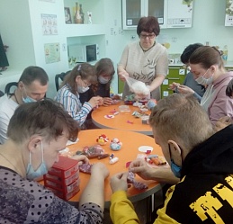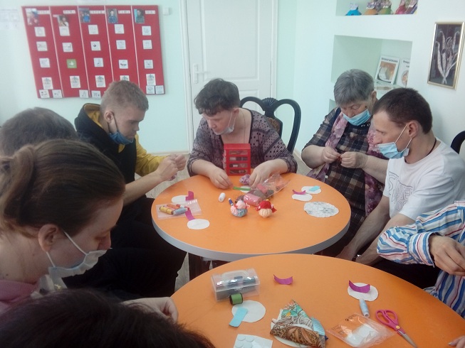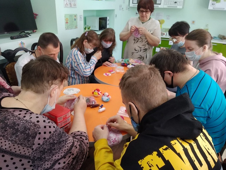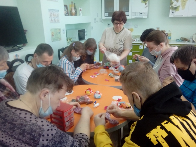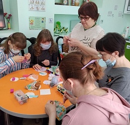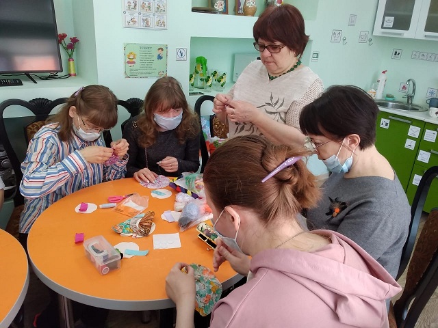 19 апреля в отделении социальной реабилитации молодых инвалидов Наволокского комплексного центра социального обслуживания населения состоялось занятие «Мастерим куклу Крупиничку».