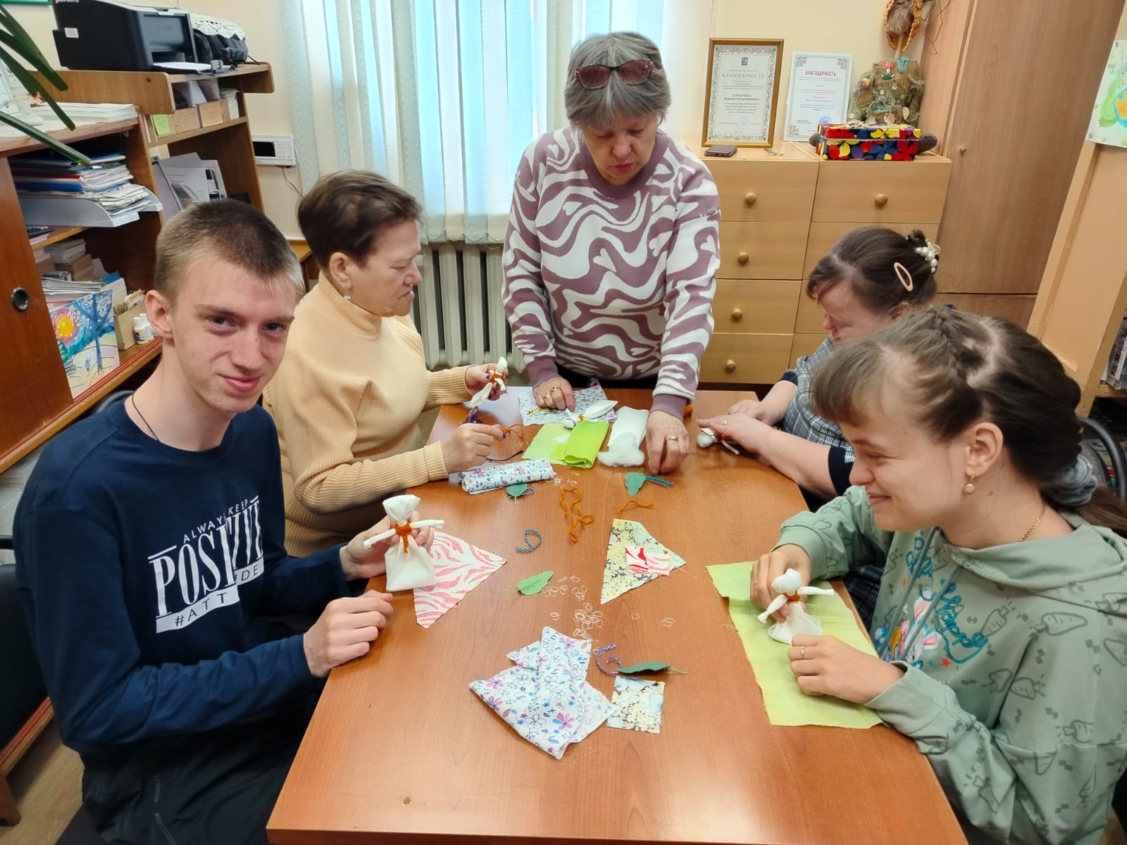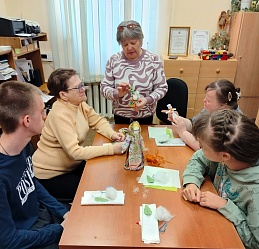 Молодые люди, посещающие отделение социальной реабилитации инвалидов Заволжского центра социального обслуживания, 9 апреля посетили Кинешемский филиал № 1, став участниками мастер-класса по изготовлению народной куклы «Пасхальная голубка».