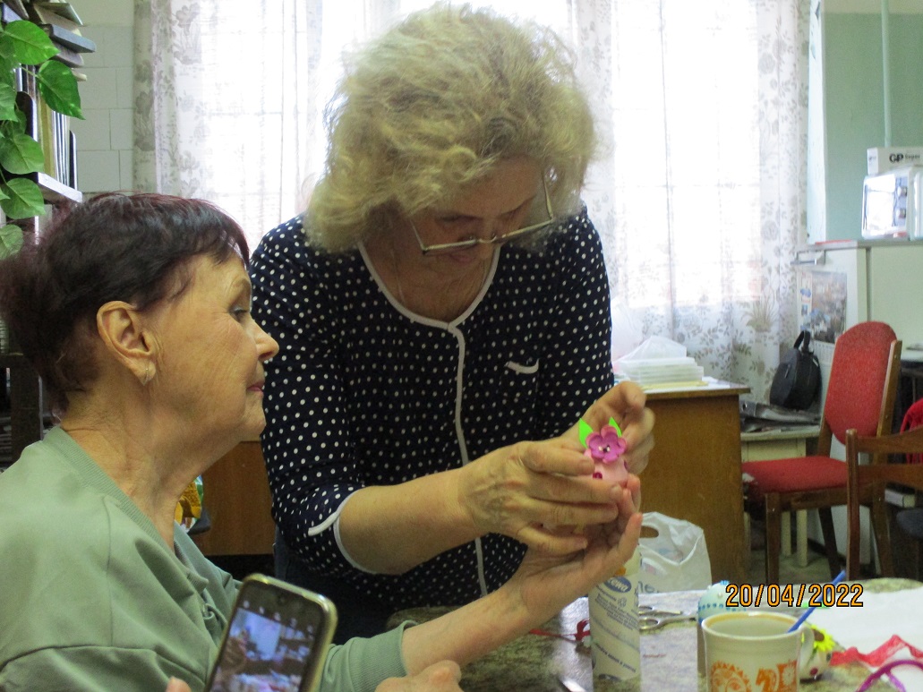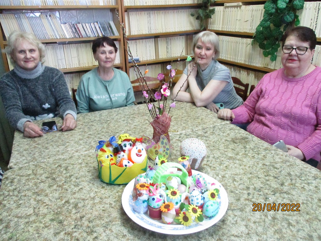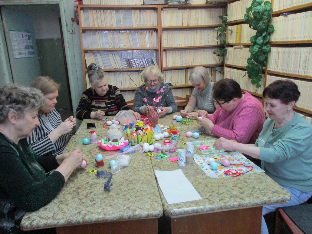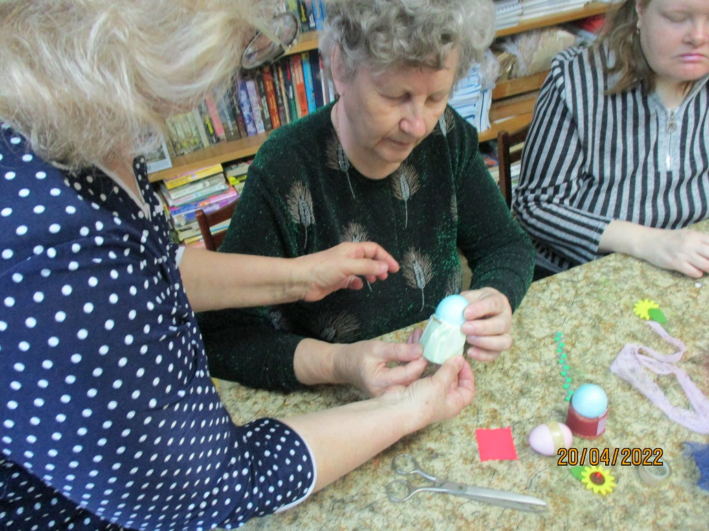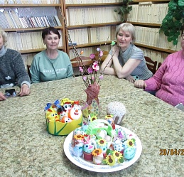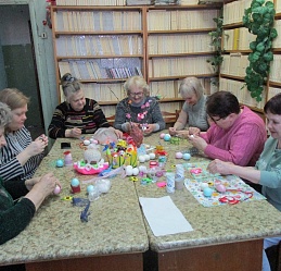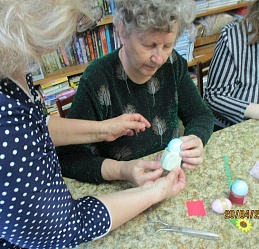В преддверии Светлого праздника Пасхи 20 апреля ведущий библиотекарь Шуйского филиала № 2 Татьяна Виноградова провела мастер–класс "Пасхальная фантазия" по украшению пасхальных яиц для членов Шуйской МО ВОС.