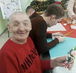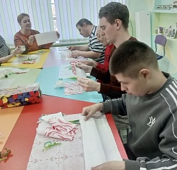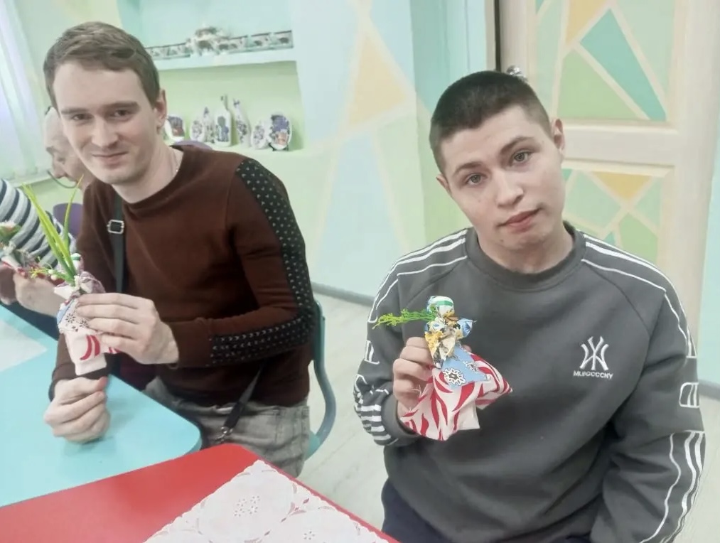 Молодые люди, посещающие отделение социальной реабилитации инвалидов Наволокского комплексного центра социального обслуживания населения, приняли участие в мастер-классе по изготовлению тряпичной куклы «Пасхальная».