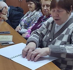 Участники встречи вспомнили основные события жизни талантливого человека Луи Брайля, а также историю создания им универсального шрифта, ознакомились с историей распространения рельефно-точечной системы грамотности слепых в мире и в России.