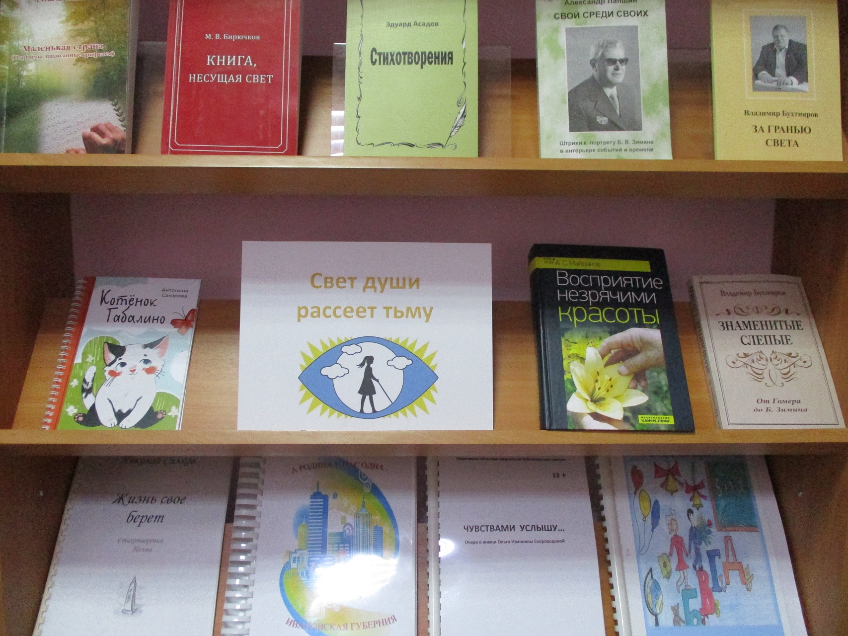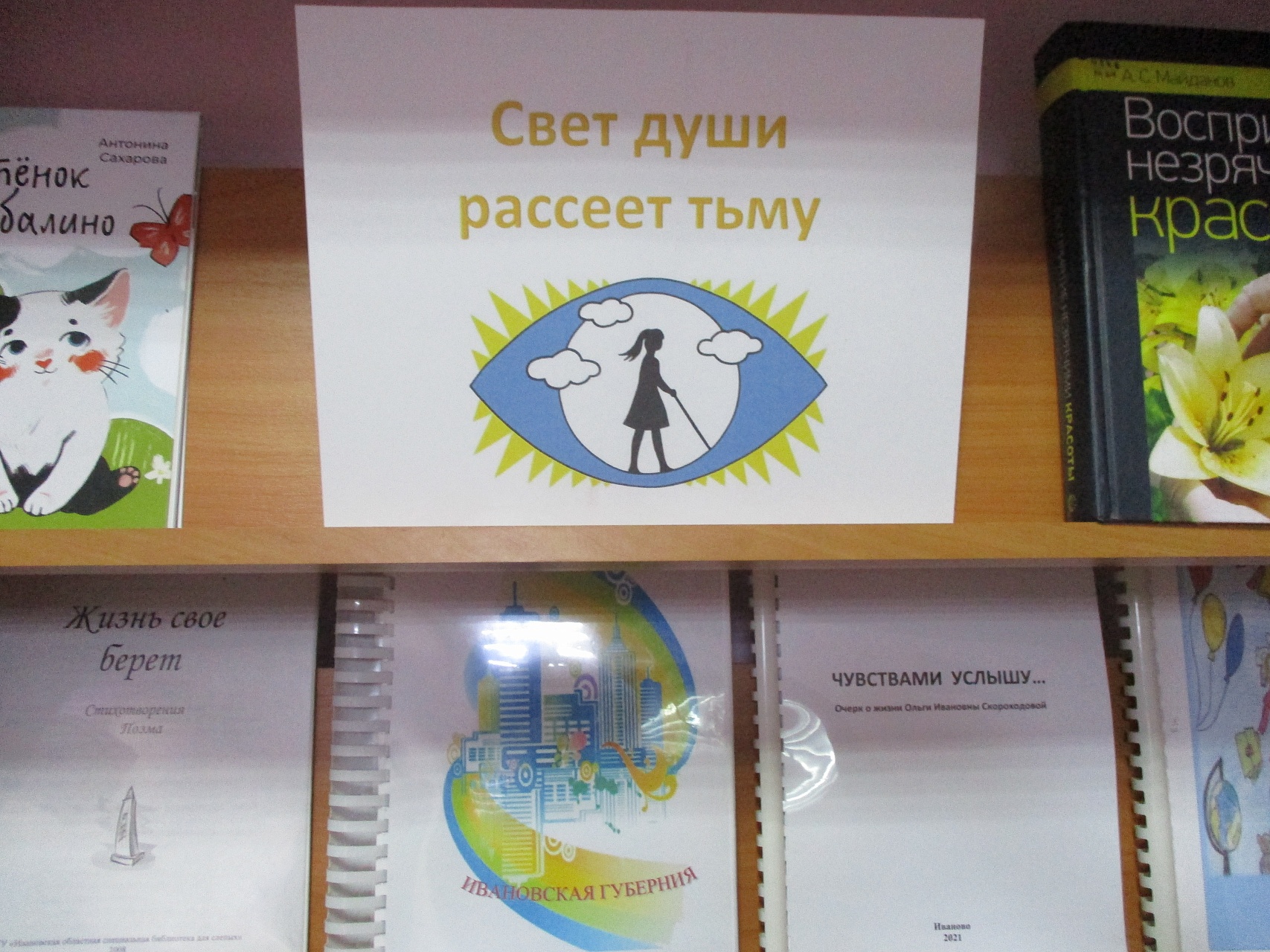 В рамках Международного дня слепых, всемирной даты, призванной привлечь внимание общества к людям с нарушением зрения, библиотекой подготовлена книжная «Свет души рассеет тьму», на которой представлена литература альтернативных форматов, в том числе, изданных библиотекой. Ознакомиться с обзором книжной выставки можно по ссылкам: