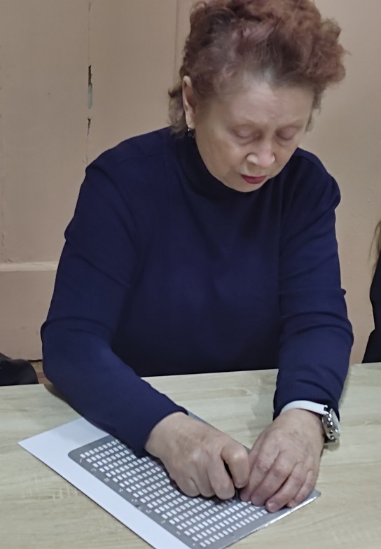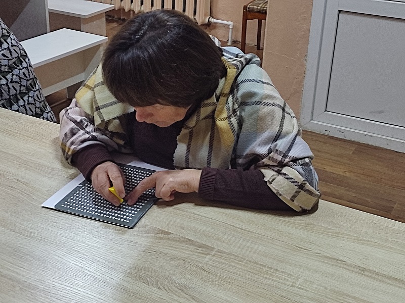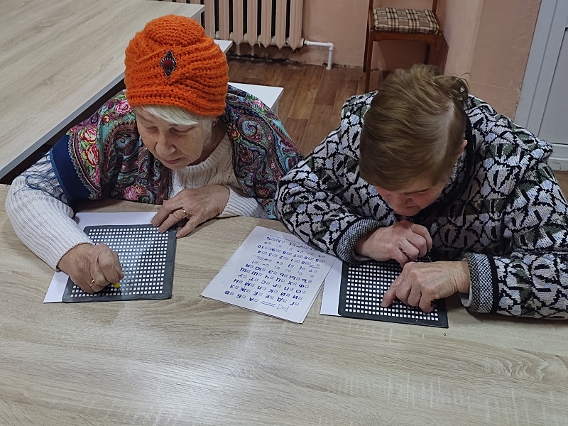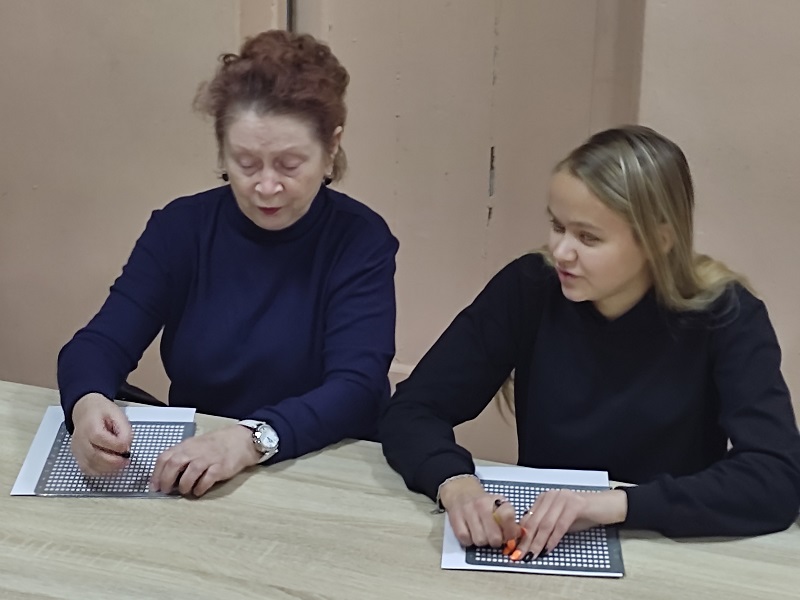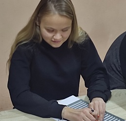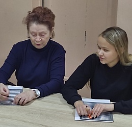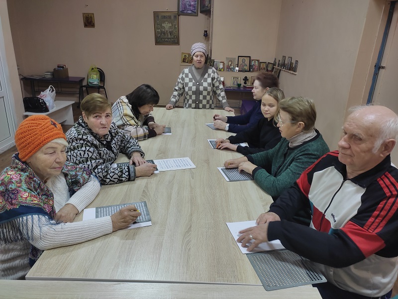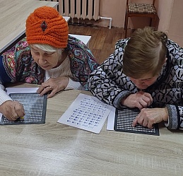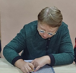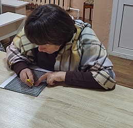 В рамках Месячника Белой трости 27 октября в выездном читальном зале Кинешемского филиала №1 на базе духовно-просветительского центра «Пересвет» состоялся мастер-класс для начинающих знатоков чтения и письма по Брайлю, инвалидов по зрению, проживающих в микрорайоне Сокольники.