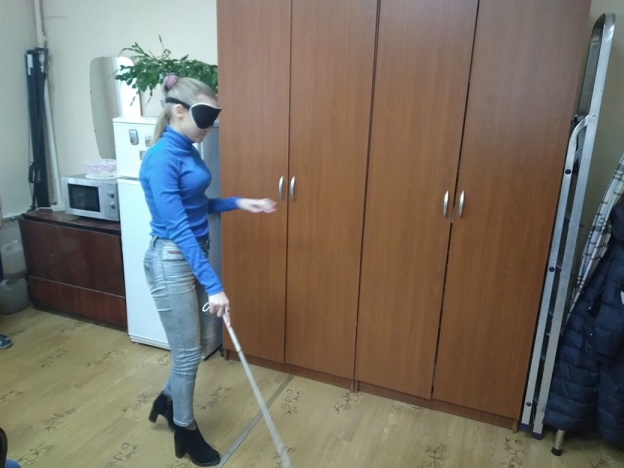 Умение ориентировке на местности лучше всех показала Ольга Грязнова. В ходе своего маршрута она применила как диагональную, так и маятниковую технику владения белой тростью.