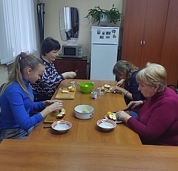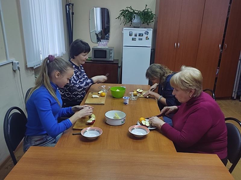 В конкурсе «Самый умелый» быстрее всех пришила пуговицу Любовь Чугунова. В конкурсе «Самый хозяйственный» Юля Воронина, ловко работая ножом, приготовила оригинальный фруктовый салат.