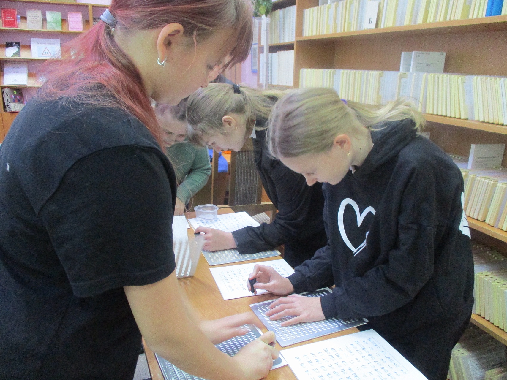 В Международный день слепых в рамках Межрегиональной Акции «Понять. Помочь. Дружить-2025» (организатор ГБУК «Самарская областная библиотека для слепых») библиотеку посетила группа школьников с педагогом дополнительного образования Полиной Коптеловой (направление обучения «ИЗО») Центра образовательных трендов «Омега».