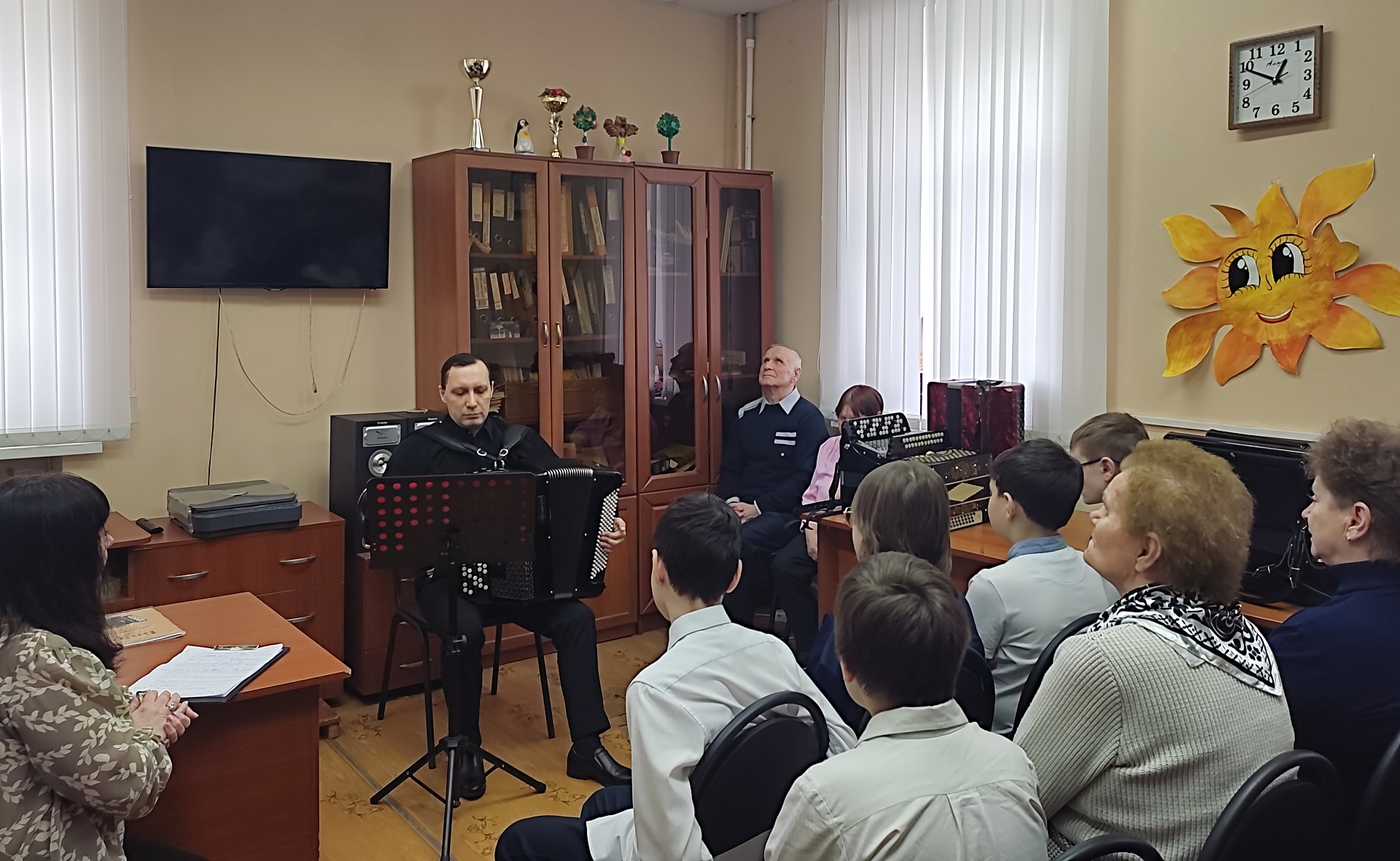 В преддверии Всероссийского Дня баяна, аккордеона и гармоники для читателей Кинешемского филиала №1 в Кинешемской местной организации ВОС состоялась музыкальная гостиная «Играй – баян, звени – гармонь и восхищай – аккордеон».