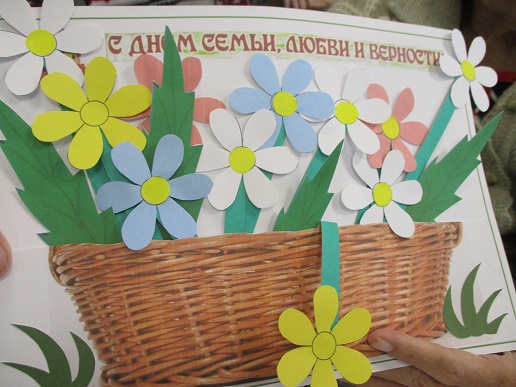 В программе гостиной прозвучал рассказ об истории этого значимого для россиян события, о России; , ромашке - символе Дня семьи, любви и верности в видеозаписи прозвучали жизнерадостные песни, что особенно важно для людей пожилого возраста. Завершил программу мастер-класс по изготовлению открытки с участием зрителей и слушателей, которым по состоянию здоровья это было доступно.
