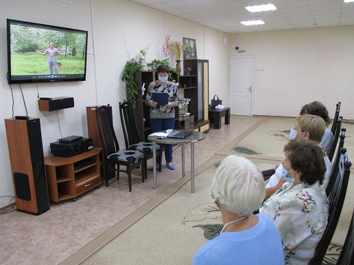 В ходе этого мероприятия, подготовленного библиотекой по просьбам членов клуба, в видеозаписи прозвучали любимые слушателями старшего поколения песни, такие как "Яблони в цвету", Белая сирень", "Натали", "Алёнушка" и другие. Песни "Мамины глаза", "Отчий дом" и "Посидим по-хорошему" были особенно трогательно восприняты участниками встречи.