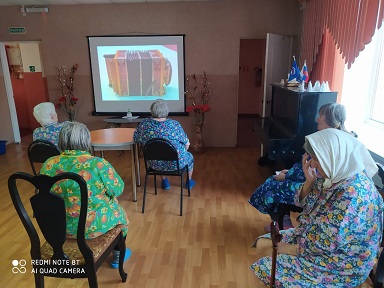 В клубе «Гармония» отделения временного проживания граждан пожилого возраста и инвалидов Наволокского центра социального обслуживания в рамках межведомственного взаимодействия с Ивановской областной специальной библиотекой для слепых был представлен виртуальный дивертисмент «Пой, гармонь, душа России». Пожилым людям рассказали об истории и видах гармошки, о том, что гармонь не просто музыкальный инструмент, но и хранительница русской старины, источник народной мудрости, культурное наследие страны. Даже в труднейшие годы войны её звучание вызывало в бойцах отвагу и помогало справиться с естественным чувством страха перед сражением с врагом.