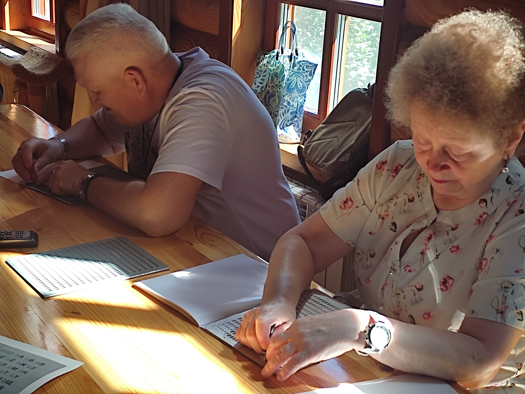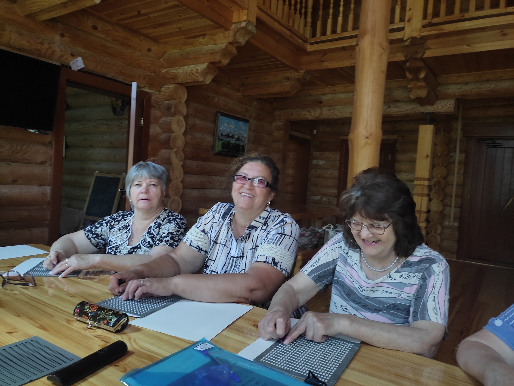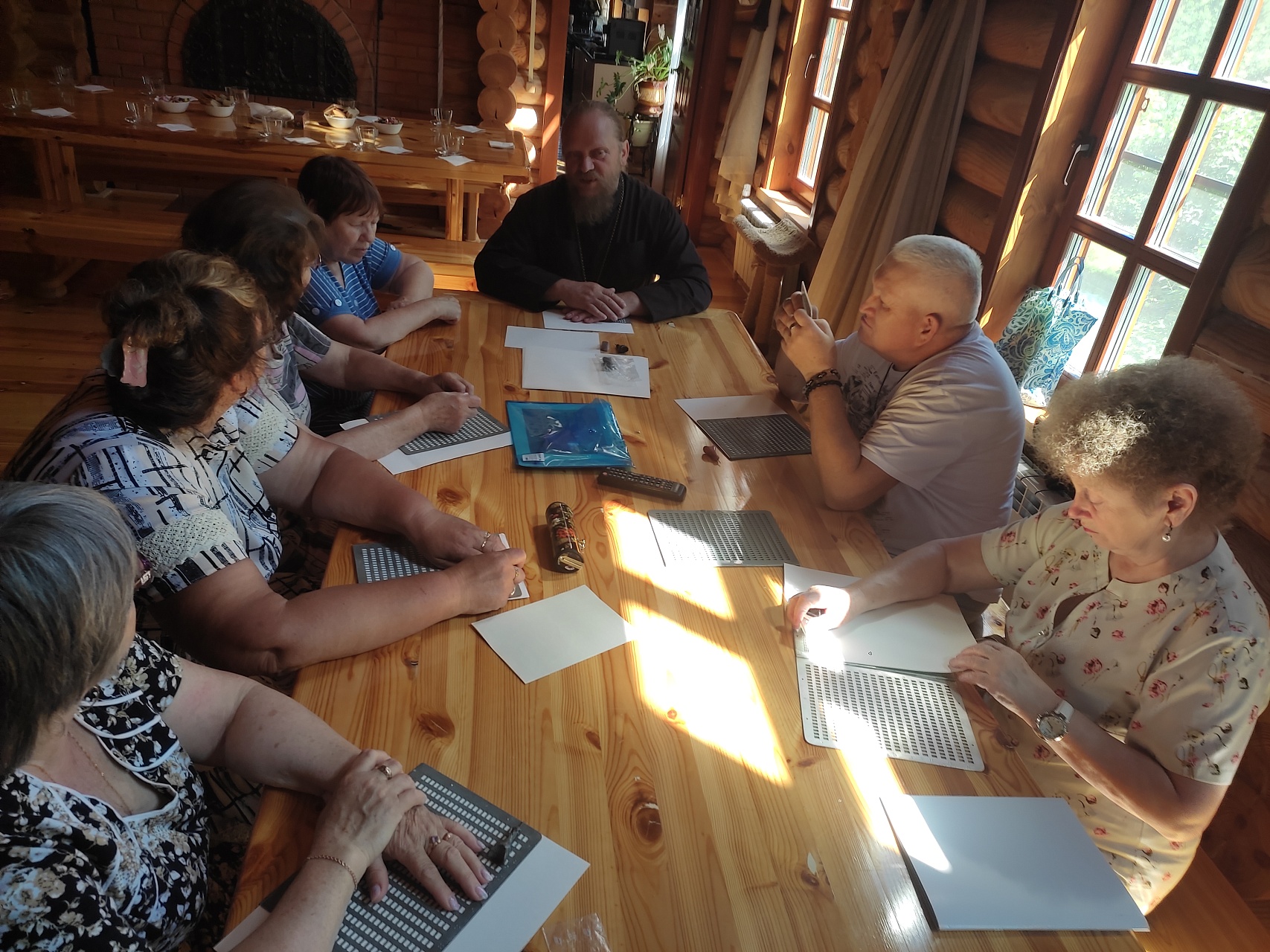 В духовно-просветительском центре при Кинешемском храме в честь великомученика Димитрия Солунского 28 июня состоялось очередное занятие кружка изучения азбуки Брайля «Шесть точек» для читателей Кинешемского филиала №1, членов Кинешемской МО ВОС.