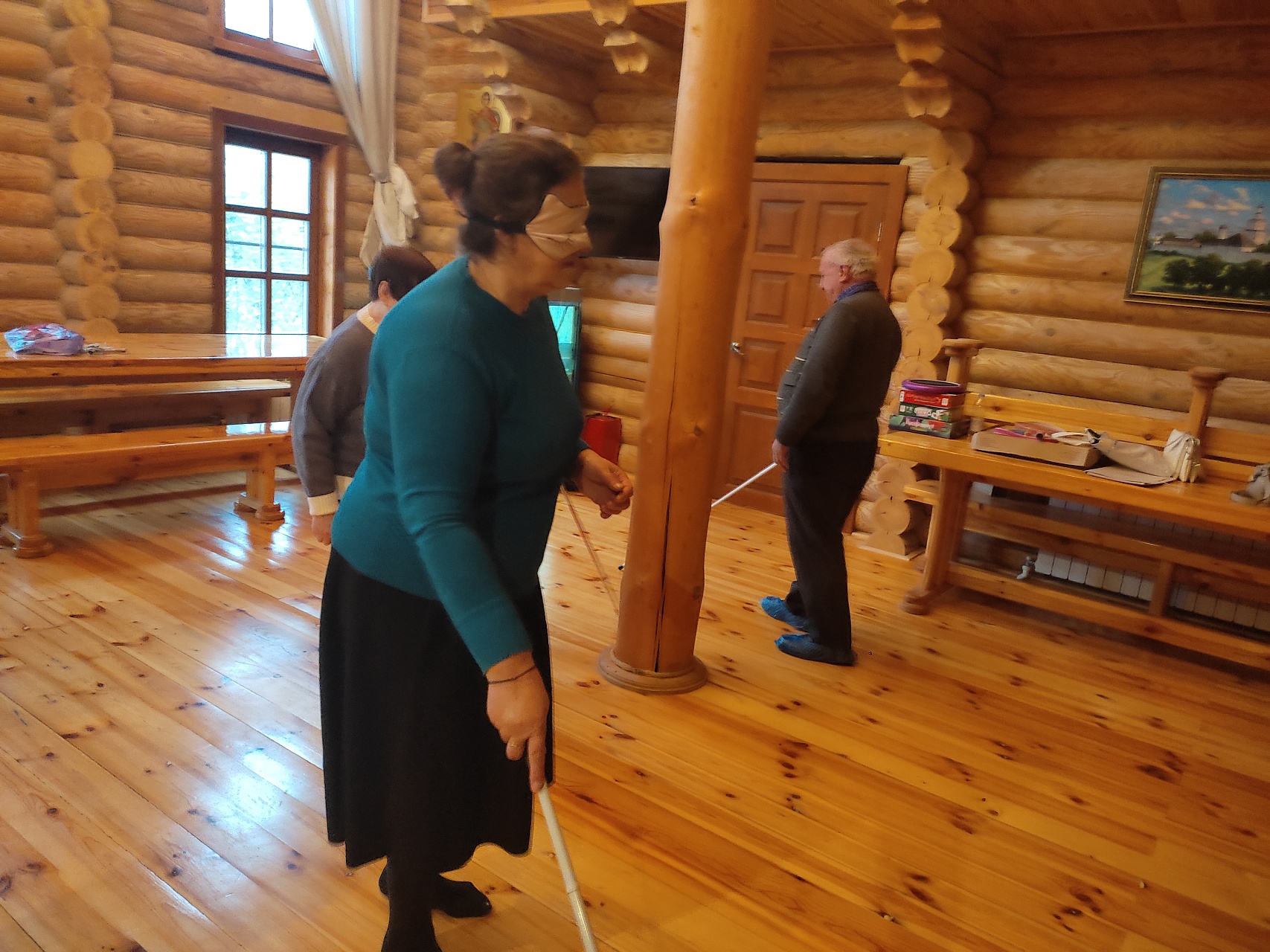 Ведущий библиотекарь Марина Горбачева рассказала об истории Белой трости – символа незрячего человека. Участники изучили различные виды и техники владения тростью, включая диагональную и маятниковую, и попробовали их на практике.