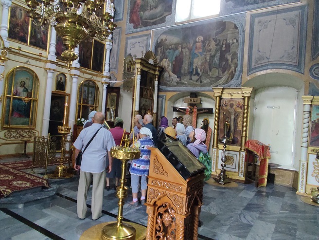 Вначале посетили Храм Воздвижения Креста Господня в селе Воздвиженье. Интересно было узнать, что построен он был на средства прихожан в 1790 года и имел два придела в честь святителя Николая Мирликийского Чудотворца и преподобного Сергия Радонежского, здесь же хранится старинная икона с чудотворным образом Матери Божией «Троеручица». В храме находятся останки (мощи) блаженного Николеньки.