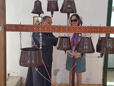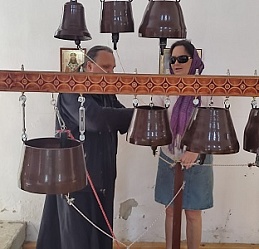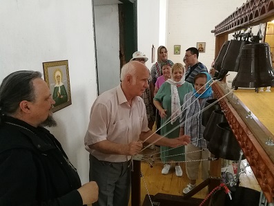 В завершении поездки мы побывали в старинном селе Парское. Настоятель Предтеченского прихода иеромонах Алексий (Абинов) организовал для гостей трапезу и дал практический урок по колокольному звону. Особое внимание было уделено святому источнику у храма.