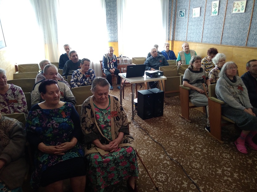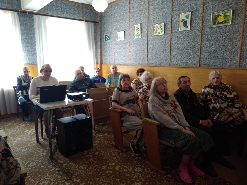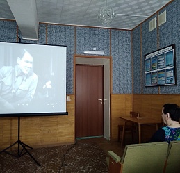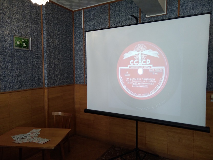 В отделении временного проживания граждан пожилого возраста и инвалидов Фурмановского центра социального обслуживания состоялся просмотр видеосюжетов цикла "Довоенные песни Победы", подготовленного библиотекой в рамках проекта "Сороковые, роковые". Летопись Великой Отечественной войны создана в прозе, поэзии, музыке, фильмах, живописных полотнах, памятниках, а сколько песен было создано в годы войны! И сколько довоенных песен наравне с ними по-новому зазвучали в годы войны!.