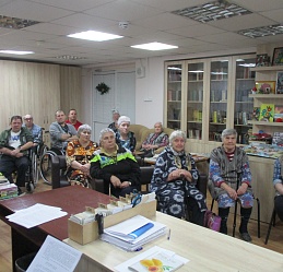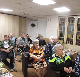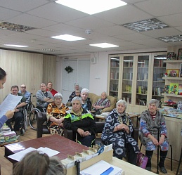 Песенный калейдоскоп «Хороша ты, зимушка-зима» состоялся 11декабря в помещении библиотеки Богородского дома-интерната для инвалидов и престарелых. Сотрудники группы стационарного обслуживания ознакомили постоянных участников совместных мероприятий с историей написания песен, их авторами поэтами и композиторами, воспевающими красоту зимней природы. В ходе встречи в видеозаписи прозвучали известные песни и романсы, в том числе и из кинофильмов, такие как «Ой, мороз-мороз», «Тройка мчится.», «Зима в избушке», «Белым снегом» и другие, которым все с удовольствием подпевали. Состоявшаяся встреча в преддверии новогодних праздников позволила подарить её участникам хорошее настроение.
