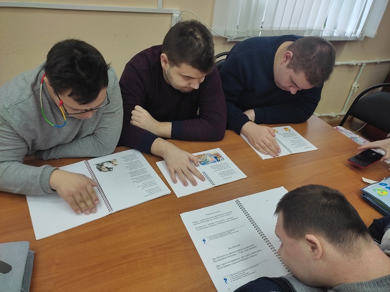 Вместе с библиотекарем читали стихотворения Агнии Барто из комбинированных изданий книжного фонда Ивановской областной специальной библиотеки для слепых «Игра», «Девочка-ревушка», «Игрушки», «Чудеса»; выполняли задания по содержанию стихотворений и работе с иллюстративными графическими изображениями.