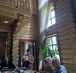 Летним солнечным утром 16 июля храм великомученика Димитрия Солунского города Кинешмы гостеприимно распахнул двери для членов Кинешемской МО ВОС, читателей Кинешемского филиала № 1. Настоятель храма протоиерей Димитрий Грудогло провел экскурсию по территории храма. Затем в трапезной состоялось встреча "У вдохновенья под крылом" с членом союза писателей России Еленой Потехиной.