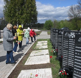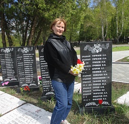 Ведущий библиотекарь Татьяна Виноградова рассказала, о том, что первый вариант мемориала был открыт в 1975 году, а современный мемориал «Вечная слава Героям» с увековеченными именами погибших открыт в 1985 году к 40-летию Победы в Великой Отечественной войне. Мемориал хранит для потомков более двух тысяч имён героев. Участники мероприятия почтили память погибших минутой молчания и возложили цветы к мемориальным плитам. Поливанова Е.Ю. в списке погибших воинов нашла и фамилию своего деда Егорова П.Г.. Память о защитниках нашей Родины жива, пока мы помним и чтим героев, и передаём её будущим поколениям.