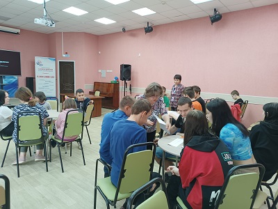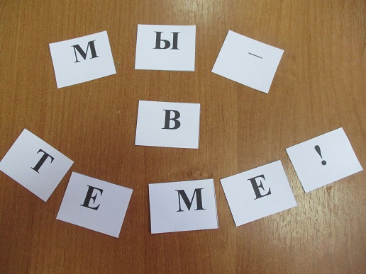 Программа встречи была достаточно насыщенной: информационный блок включал рассказ об основных правах гражданина Российской Федерации, о понятиях и принципах выборных избирательных процессов, осуществляемых в нашей стране. Насколько материал был усвоен участниками, было выяснено в конкурсном блоке: разбивших на три команды, игроки выполнили три задания. В конкурсном «Лото» нужно было подобрать к основным терминам выборного процесса карточки с определением, например, «Избиратель – это…». Второе, не менее сложное задание, состояло в решении кроссворда «Будущий избиратель». Интересным и лёгким заданием стало расшифровать цифровую фразу с помощью букв русского алфавита. За правильное выполнение каждого задания команда получила буквы и знаки препинания, составившие итоговое квест-словосочетание «Мы – в теме!».