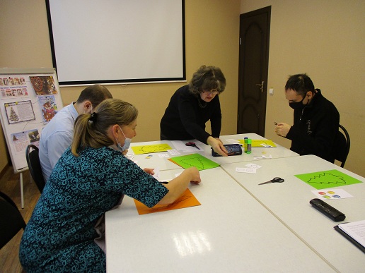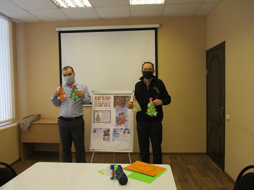 Участники игровой программы, получатели социальных услуг отделения социальной реабилитации инвалидов Комплексного центра социального обслуживания населения по городскому округу Кохма и Ивановскому муниципальному району, узнали интересные факты о том, чем отличаются от русского Деда Мороза его собратья в разных странах мира; как их называют, каким образом и что они дарят детям в качестве гостинцев. Затем молодые инвалиды с незначительной помощью взрослых с усердием трудились над украшением новогодней ёлочки: разукрашивали шары и звёздочки, аккуратно вырезали их из заготовленных заранее картинок. И вот все украшения размещены и приклеены на разноцветных трафаретах с ёлочками. Занятие прошло с интересом и пользой для Степана и Виталия, проявивших желание, свои умения в занятиях прикладного творчества.