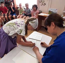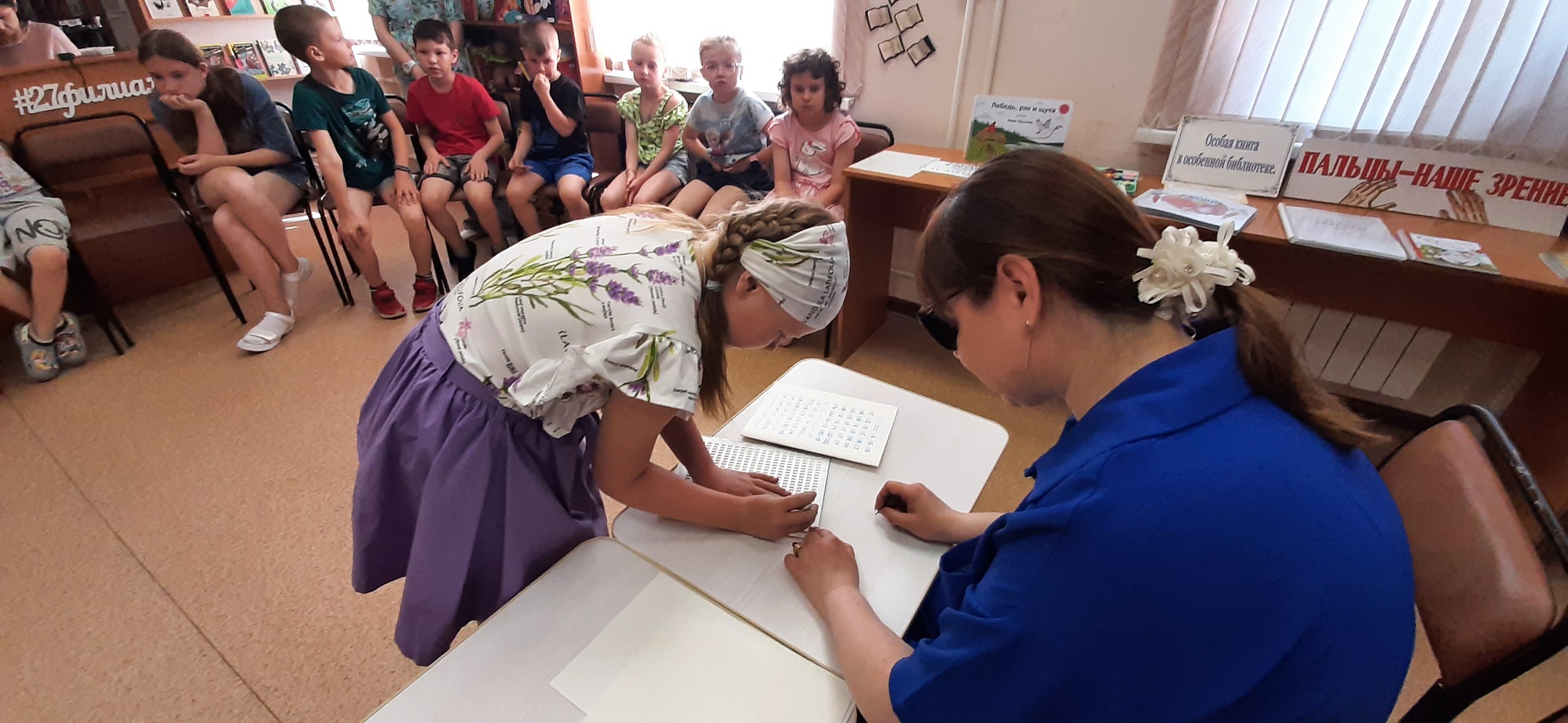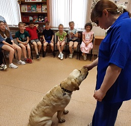 В преддверии Международного дня защиты детей в Библиотеке-филиале № 27 ЦБС детских библиотек г. Иваново главный библиотекарь Ивановской областной специальной библиотеки для слепых Августа Виноградова и читатель Светлана Каретина, руководитель клуба владельцев собак-проводников «Вектор» провели особенную встречу «Удивительные помощники и друзья незрячего человека». На встречу пришли дети школьного лагеря «Омега-Ракета» Центра образовательных трендов «Омега».
