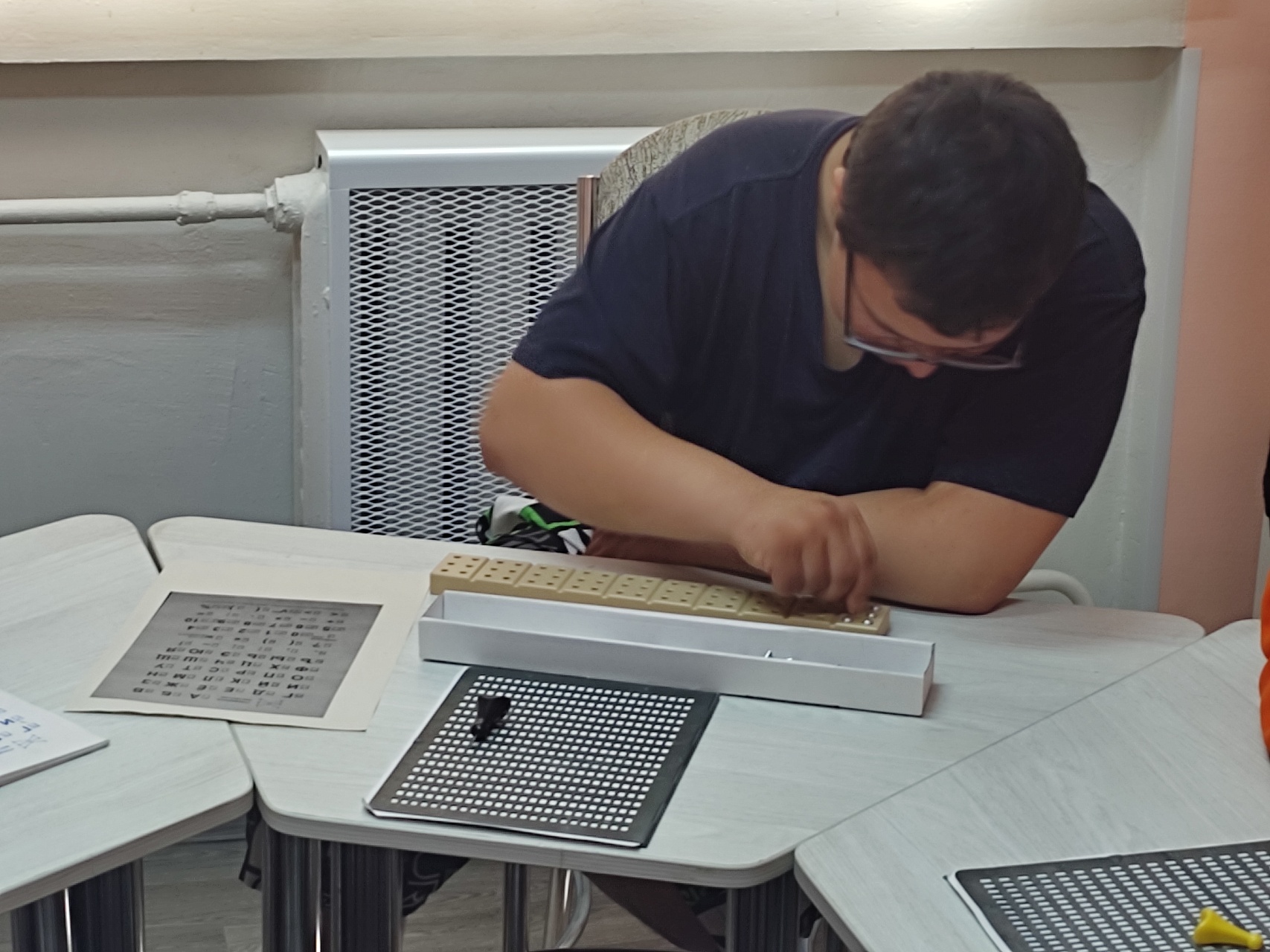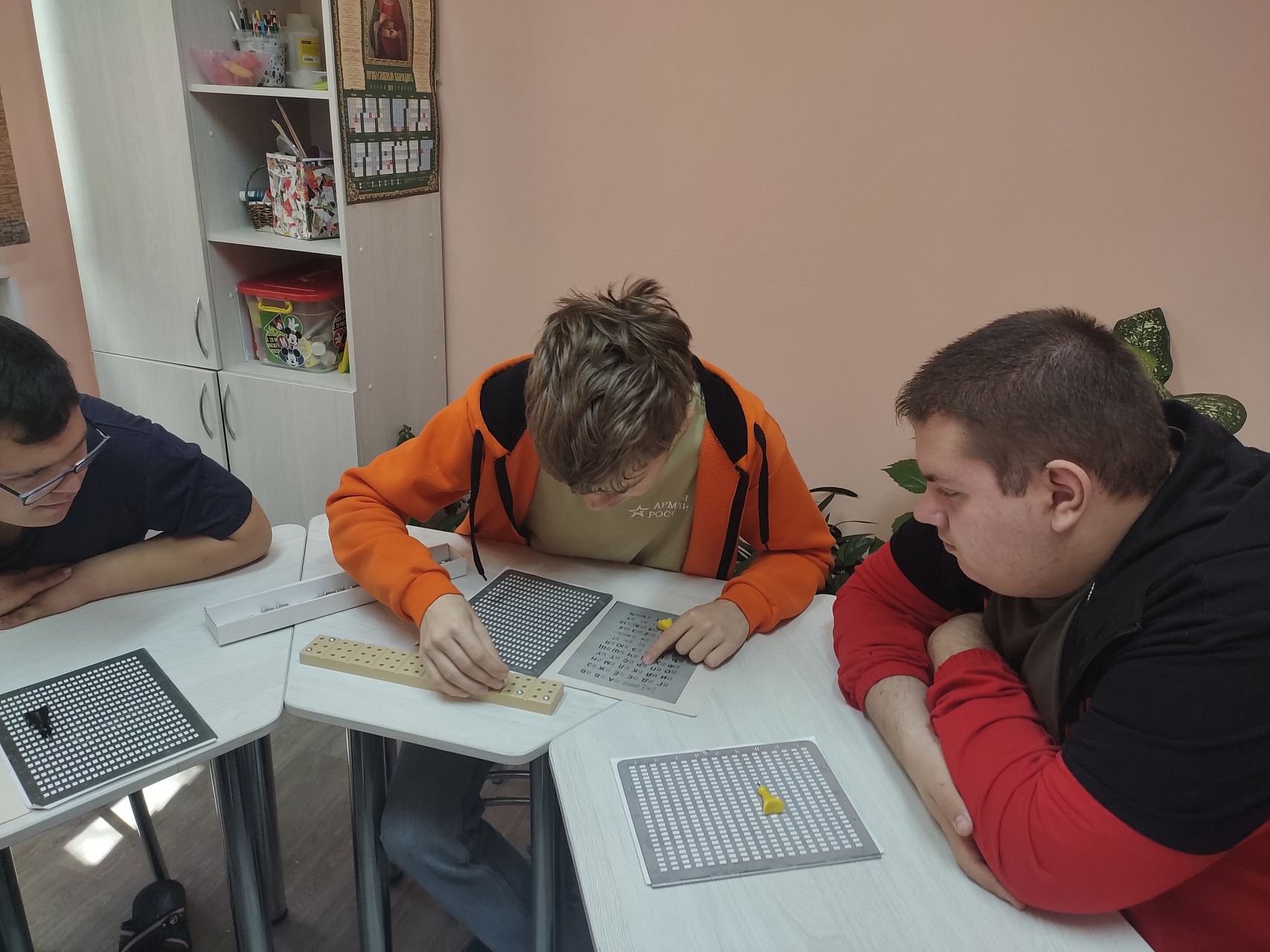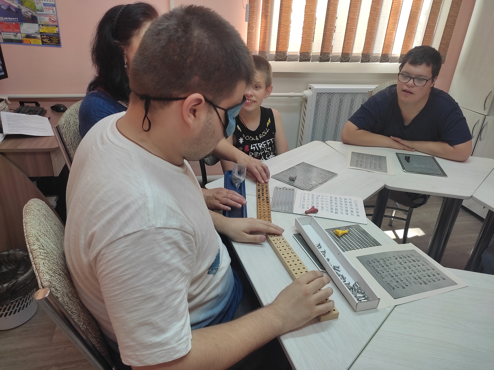 Из рассказа ведущего библиотекаря Марины Горбачевой ребята узнали о том, что 4 января 1809 года появился на свет известный французский тифлопедагог Луи Брайль, который создал для незрячих людей особый рельефно-точечный шрифт. Молодые люди ознакомились с методом чтения и письма по системе Брайля, попробовали составлять слова на разборной азбуке-колодке.