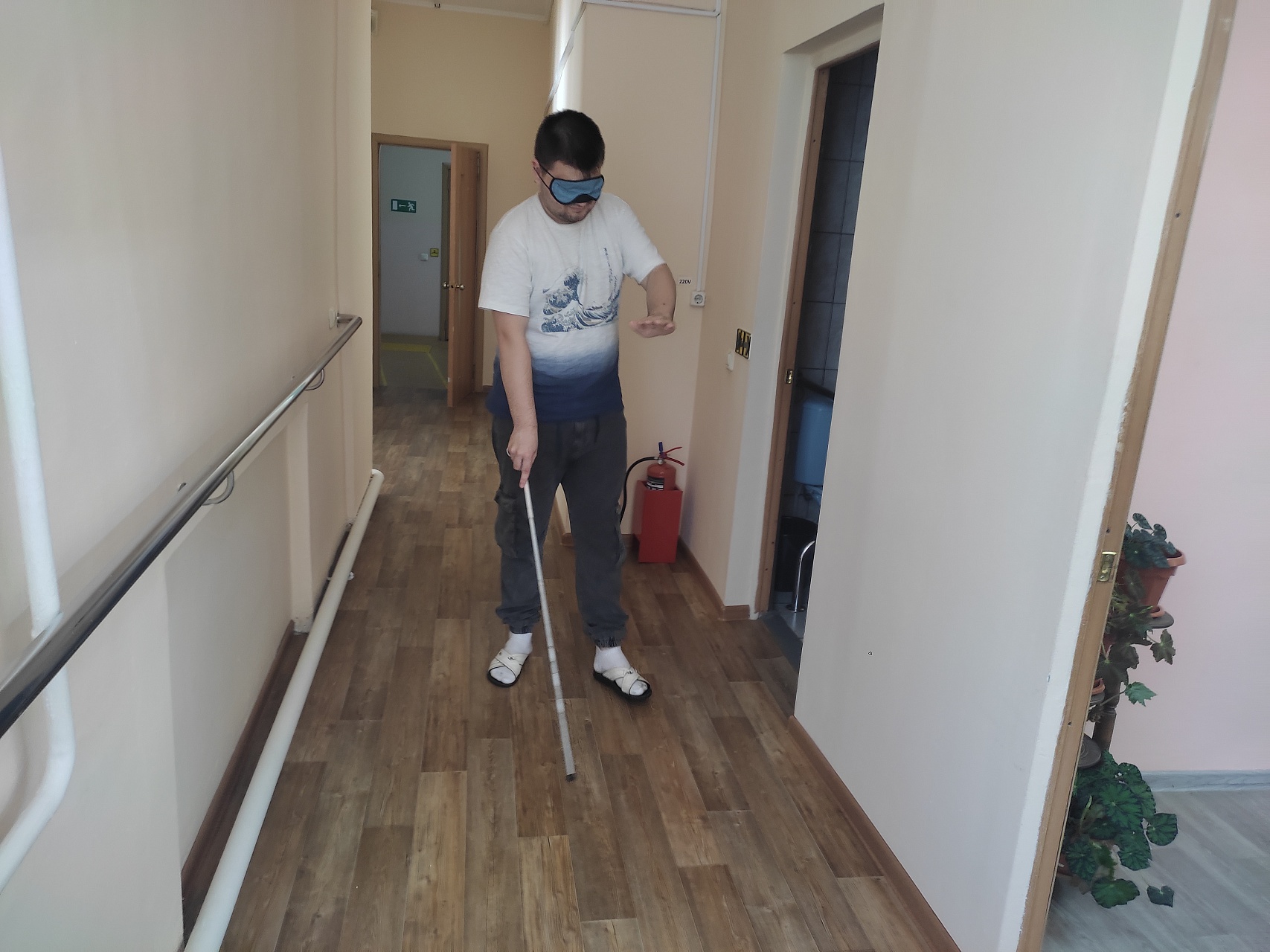 Большой интерес вызвало выполнение задания по передвижению с помощью белой трости с повязкой на глазах.