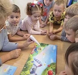 Ведущим библиотекарем Шуйского филиала № 2 Татьяной Виноградовой 22 октября для воспитанников старшей группы МДОУ «Центр развития ребёнка – Детский сад № 4» (г.о. Шуя) было проведено познавательно-игровое мероприятие «Особенное знакомство». Ребята узнали о существовании специальной библиотеки для людей с нарушением зрения; перелистали страницы удивительных для них брайлевских книг; ознакомились с «говорящими книгами» и специальным изданием серии «Волшебный карандаш», которые позволяют их незрячим сверстникам познавать окружающий мир. Детям были продемонстрирован письменный прибор для инвалидов по зрению; они попробовали написать известные им буквы с помощью грифеля.